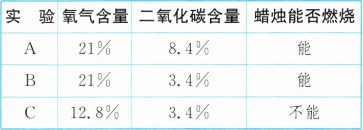 。|实验|氧气含量|二氧化碳含量|蜡烛能否燃烧|