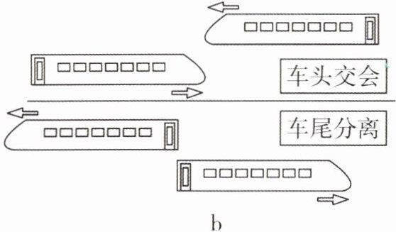 的.(5)当两辆相同的列车相向行驶,始终保持匀速直线运动.如图b所示,从车头交会到车尾分离时总共需要