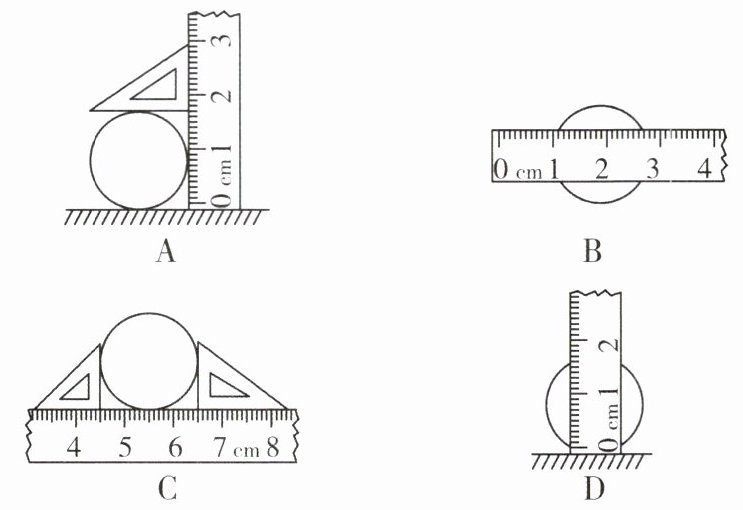 7. 科学思维 测量球形物体的直径时,下列几种测量方法中正确的是(
