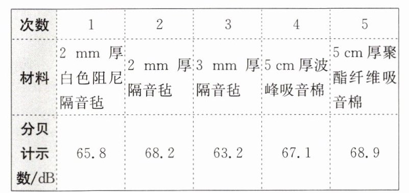 。(2)分析数据,从隔音效果来说,最适合的材料是