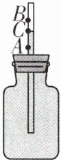 (2)若将瓶放到标准大气压下冰水混合物中,液柱在$A$处,$B$、$C是与A$点相差2摄氏度的两点,则$A$处的温度是