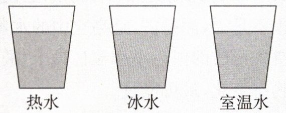 5. (2024·潍坊潍城期中)将热水、冰水和室温水(水温与室温相同)分别装入纸杯中,如图所示. 一段时间后,发现其中两只纸杯的杯壁上有小水珠出现. 下列分析正确的是(