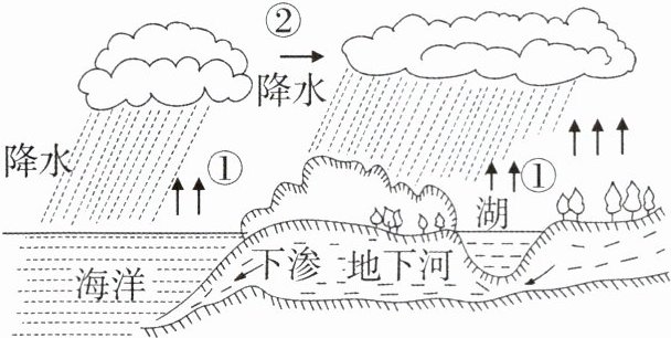 4. 如图是水循环示意图。图中过程①发生的物态变化是汽化,同时伴随着