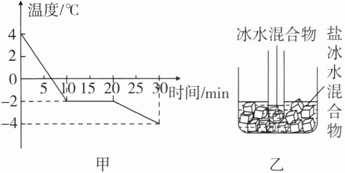 (3) 如果将一个装有冰水混合物的试管放入正在熔化的盐冰水混合物中(如图乙所示),试管中的冰水混合物中的冰会