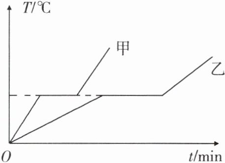 8. (2024·毕节月考)如图所示是对固体物质甲和乙加热时的温度 $T$ 与时间 $t$ 的图像,则甲、乙