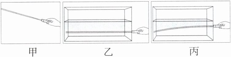 (3)实验结束后,某同学发现在玻璃缸中盛上清水,沿缸壁轻轻注入浓糖水,从侧壁水平照射激光,看到缸内光的路线如图丙所示,当搅拌缸中的水后,观察到光的路线呈直线,说明光沿直线传播的条件是______。