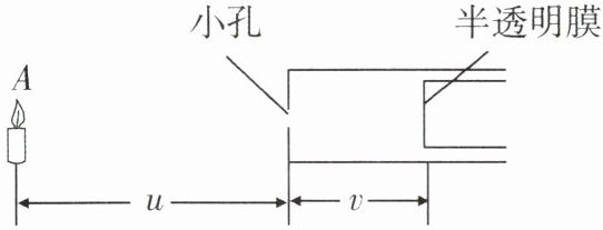 12. 如图所示,小明制成了一个针孔照相机,其实就是小孔成像的实验装置。将点燃的蜡烛置于小孔前的适当位置,观察并探究小孔成像的特点。