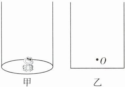 10. 模型构建 “井底之蛙”是我们耳熟能详的一个寓言故事,如图甲所示,一只青蛙在枯井中,请你利用光路图在图乙中画出青蛙(眼睛用点$O$表示)通过井口能观察到的范围。