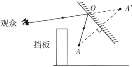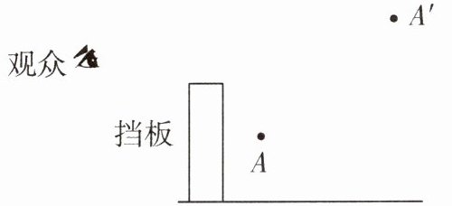 11. (2024·潍坊诸城模拟)平面镜是魔术师表演节目常用的道具。如图所示,观众看到悬在空中的演员 $ A' $,实际演员在挡板后的位置 $ A $。请画出平面镜的位置,并完成观众看到演员 $ A $ 的光路图。