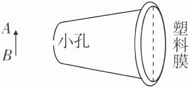 1. (母题)(2024·白银中考)如图所示是小强在纸杯上蒙上一层塑料膜做小孔成像实验的情景,请在图中作出烛焰(用AB表示)在塑料膜上成的像(用箭头$A'B'$表示)及光路图.