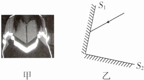 5. (2024·安顺一模)小华同学发现校服上的反光条可以在夜间反射周围的光线,从而对路人和司机起到一定的警示作用.请教老师后得知:制作反光条的反光材料表面覆盖了一层微棱镜(如图甲所示),这些微小结构可以将不同方向入射的光按原方向反射回去.微棱镜的结构可以简化为图乙,若一束光照射到微棱镜上,请你在图乙中画出光反射后的光路图.