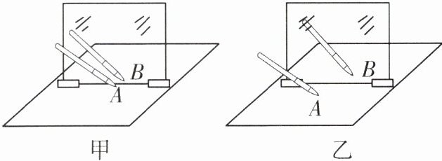 (2)如图乙所示,让中性笔$A$离开玻璃板一小段距离,在玻璃板后移动中性笔$B$,直至$B与A$的像完全重合,这样做既可以______,又可以比较像与物体的大小关系.将光屏放在中性笔$B$的位置,光屏上______(选填“能”或“不能”)承接到中性笔$A$的像.