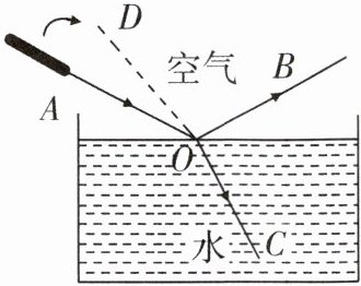 为折射光线;保持入射点$O$不动,在竖直平面内,顺时针缓慢旋转入射光线$AO至图中虚线DO$位置,反射角将______变小