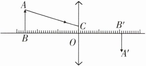 (2)主光轴上有刻度,凸透镜光心 $ O $ 处的刻度定为 $ 0 $ 刻度线,每一小格代表 $ 1 cm $,请你通过作图读出,凸透镜的焦距为______ $ m $。