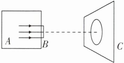 8.(2024·菏泽定陶期末)如图所示,$ A $ 是一只水平放置的长方形暗盒,盒内有水平向右的平行光,$ B $ 为暗盒右侧平面上的一个圆孔,$ C $ 是一个与暗盒右侧平面平行的相间一定距离的光屏,若在外径与圆孔 $ B $ 内径相同的平板玻璃、凹透镜、凸透镜这三个光学器件中取一个嵌入圆孔 $ B $ 中,发现在光屏 $ C $ 上会呈现一个比圆孔大的圆形光斑,则嵌入圆孔 $ B $ 的那个光学器件是(