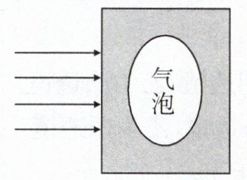 6. 玻璃砖中有一气泡,其剖面如图所示,图中的平行光线经过玻璃砖后将会(