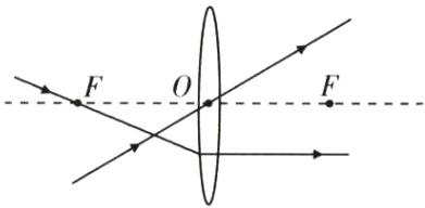 (1)请作出这条光线经过凸透镜后的折射光线。