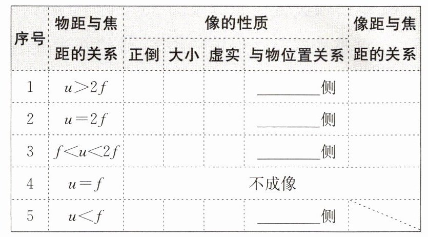 |序号|物距与焦距的关系|像的性质|像距与焦距的关系|
