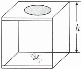 7. 科学实践 小明用透明塑料盒设计了一个昆虫标本观察器,如图所示。盒底上放标本,盒盖上嵌入一凸透镜。有焦距为5 cm和10 cm的两种凸透镜,为了在盒盖上方附近,通过凸透镜观察到标本正立、放大的像,凸透镜焦距$f与盒高h$选择合理的是(