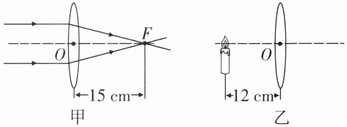 cm;当把烛焰放在此凸透镜左侧12 cm处时,如图乙所示,则从该凸透镜右侧通过凸透镜可以看到一个正立
