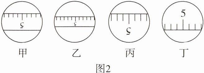 3. 图 1 是放置在水平桌面上的刻度尺的一部分,图 2 中甲、乙、丙、丁是通过凸透镜所看到的刻度尺的像. 若凸透镜先贴着刻度尺然后逐渐远离,则看到刻度尺的像的先后顺序正确的是(