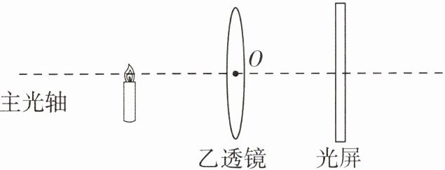 5. (母题)(2024·河池民族学校期末)甲、乙、丙三个凸透镜的焦距的关系为 $ f_{甲}>f_{乙}>f_{丙} $,如图所示,用乙透镜进行实验,物体到透镜的距离等于它 2 倍焦距时,光屏上成清晰的等大、倒立的像,用甲、丙透镜进行实验时,只把透镜放在乙透镜原来的位置,不改变物距,前后移动光屏,以下判断正确的是(