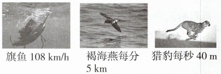 7. 现在陆地上跑得最快的动物是猎豹,在水中游得最快的动物是旗鱼,在空中飞得最快的动物是褐海燕,如图所示是三种动物及它们运动的有关数据,如果有可能让这三种动物在一起比赛,冠军是(