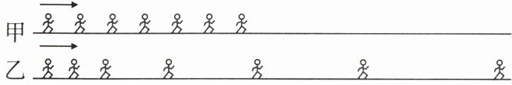 1. 如图记录了两个运动员在平直赛道上奔跑时每隔1秒的位置.由图可知 (