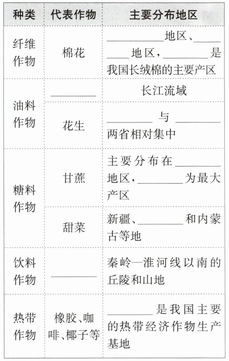 三、主要农作物分布(★★★)