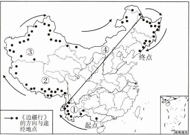 (4)图示《边疆行》路线不能到达我国领土四端点中的最
