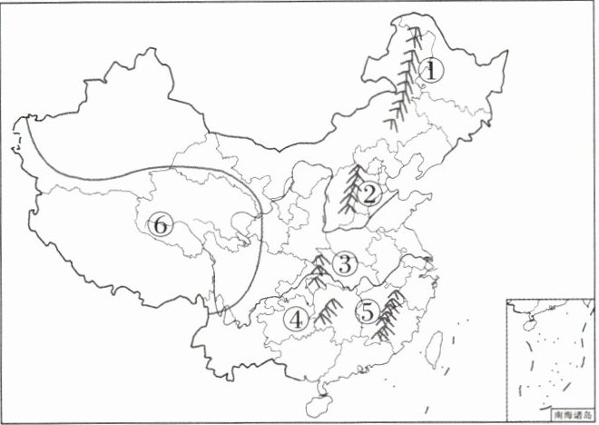 (2)写出图中序号代表的山脉名称。