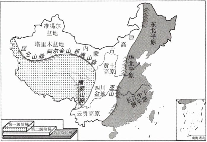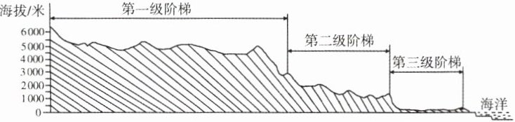(1)图中界线是我国地势第______级阶梯与第______级阶梯的分界线。⑥地主要地形类型是______。
