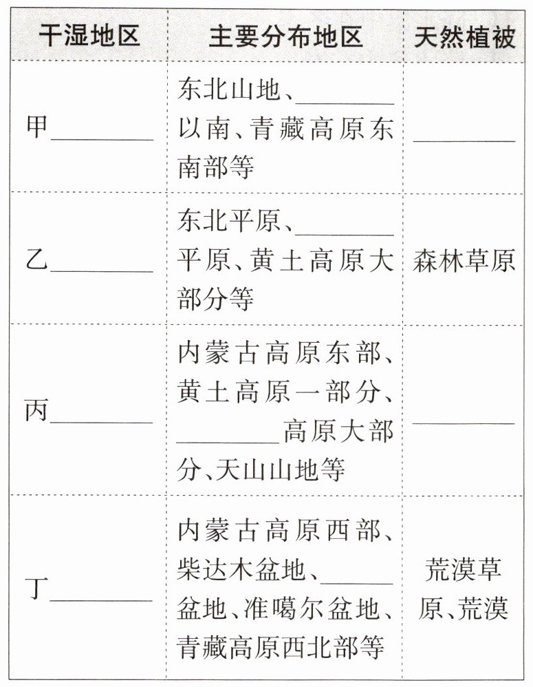 (1)划分依据:气候的干湿程度。