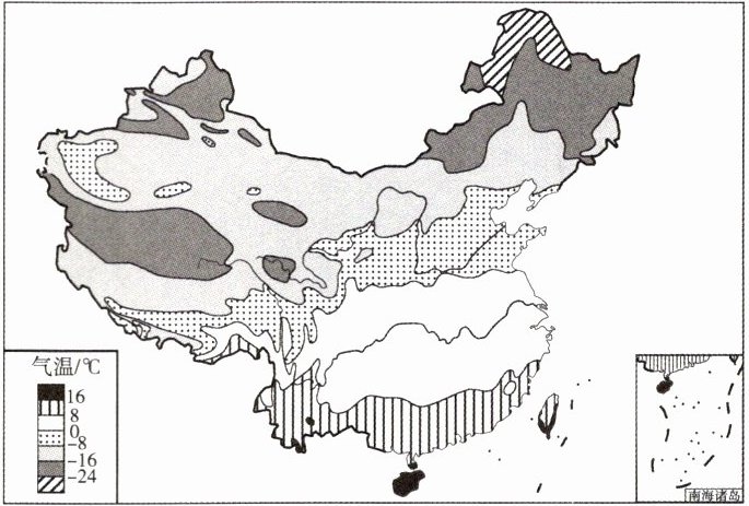1. 此图反映的我国冬季气温分布的特点,正确的是(