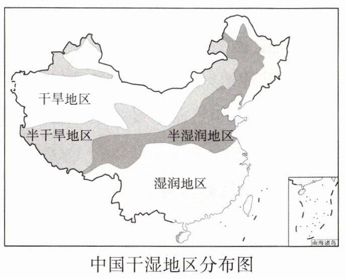 (4)“雨是最寻常的,一下就是三两天。”请说出山东省所属的主要干湿地区: