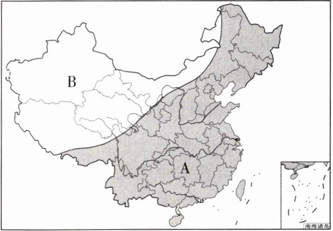 材料一 中国季风区与非季风区示意图
