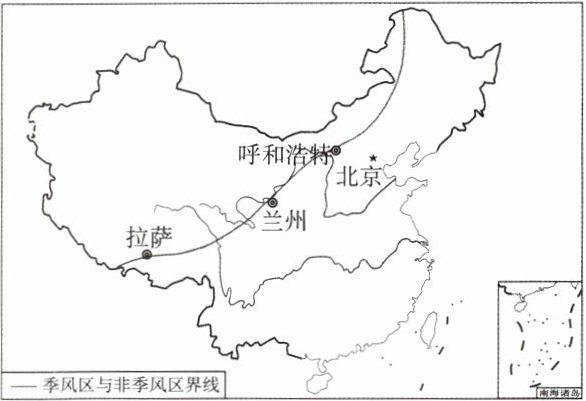 )。季风区与非季风区的界线习惯上以 ___—阴山山脉—贺兰山—___—冈底斯山脉以东一线为界。(大兴安岭