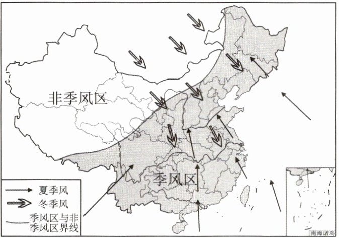 1. 读中国季风区与非季风区分布图,有关季风对我国气候影响的叙述,正确的是(