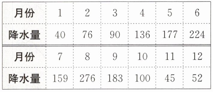 材料二 我国某城市多年平均降水量(单位:毫米)月份分配表