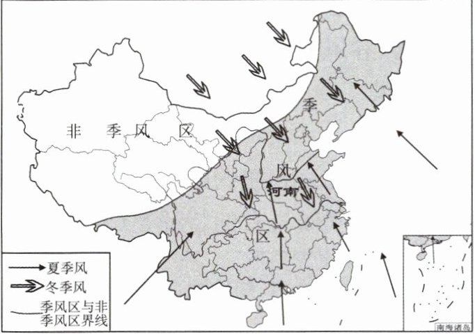 5. 河南位于我国东部季风区,夏季降水多。导致我国东部季风区夏季降水多的主要原因是(