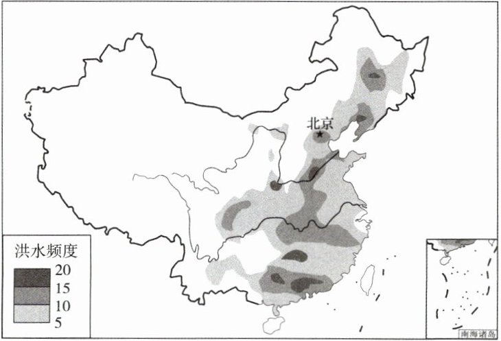 4. 有关中国洪水频度空间分布的叙述,正确的是(