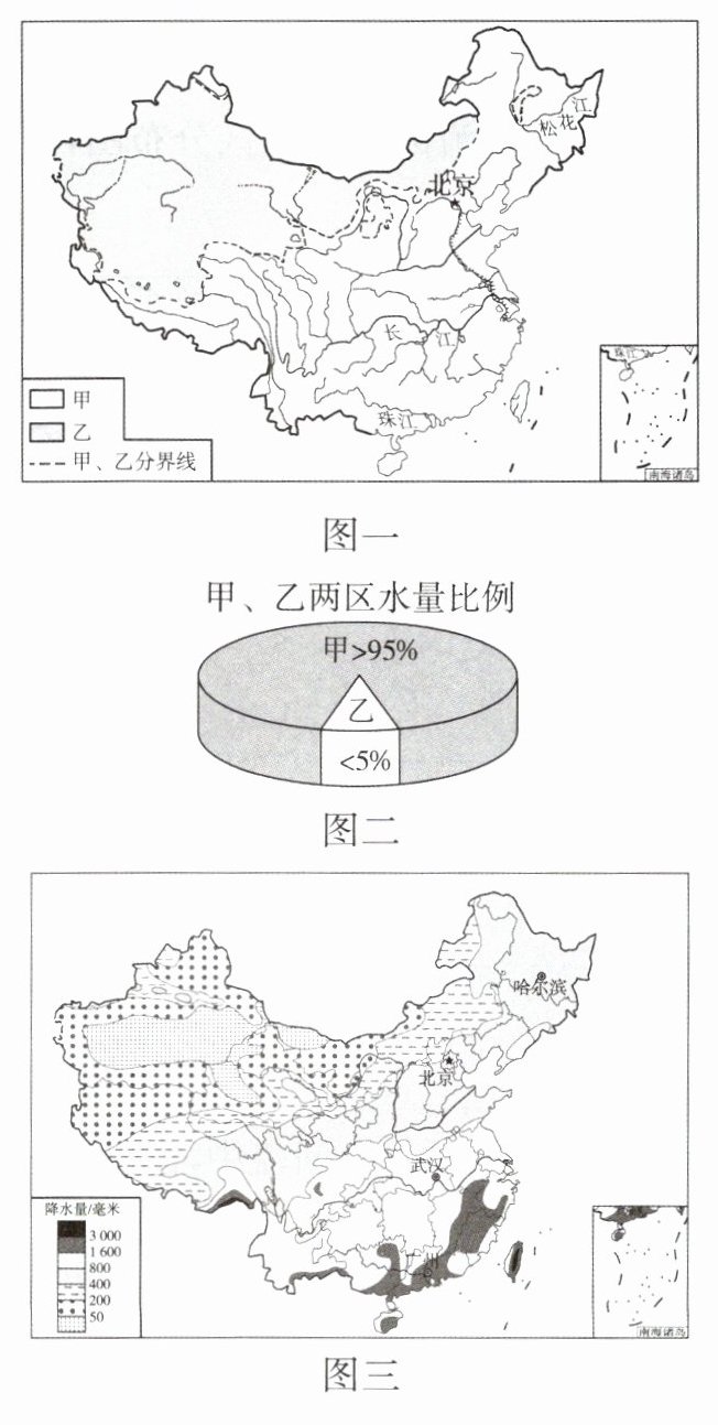 区。(2)甲、乙两区河流水量比例差异大,据图分析原因。