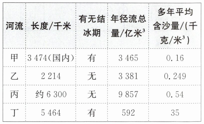 6. 表中甲、乙、丙、丁分别代表的河流为(