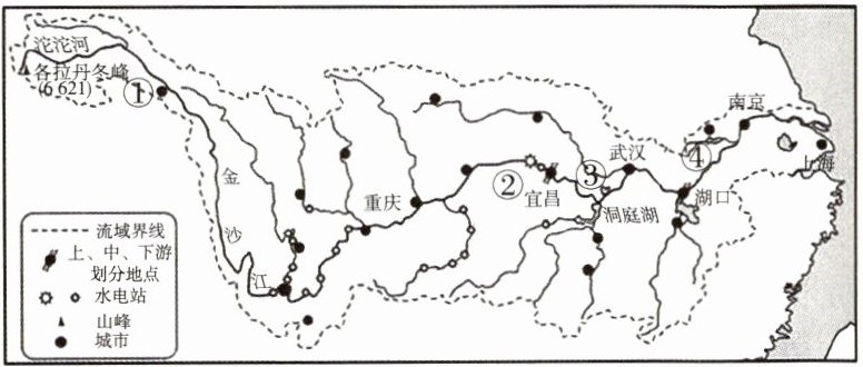 长江是我国最大的河流,也是我国东西部交通的大动脉,长江干支流蕴藏着丰富的水能资源。读长江干支流示意图,回答 6~7 题。