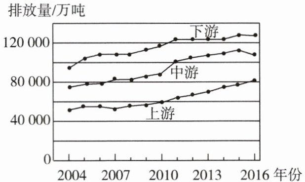 (2)2004—2016 年,长江上、中、下游各区域废水排放量整体呈现______趋势,其中______游的废水排放量最大。
