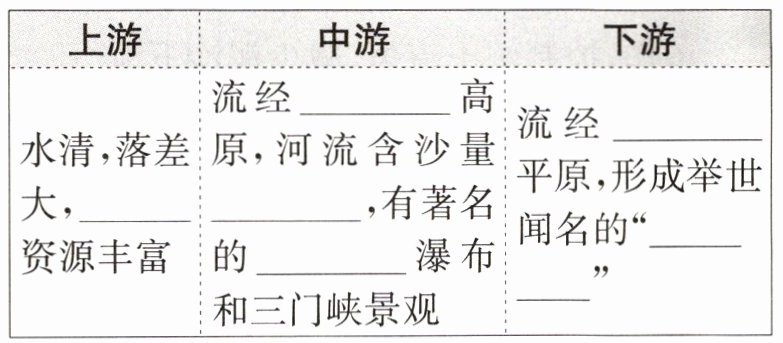 ③ 上、中游____资源丰富,已建成多座大型水电站。