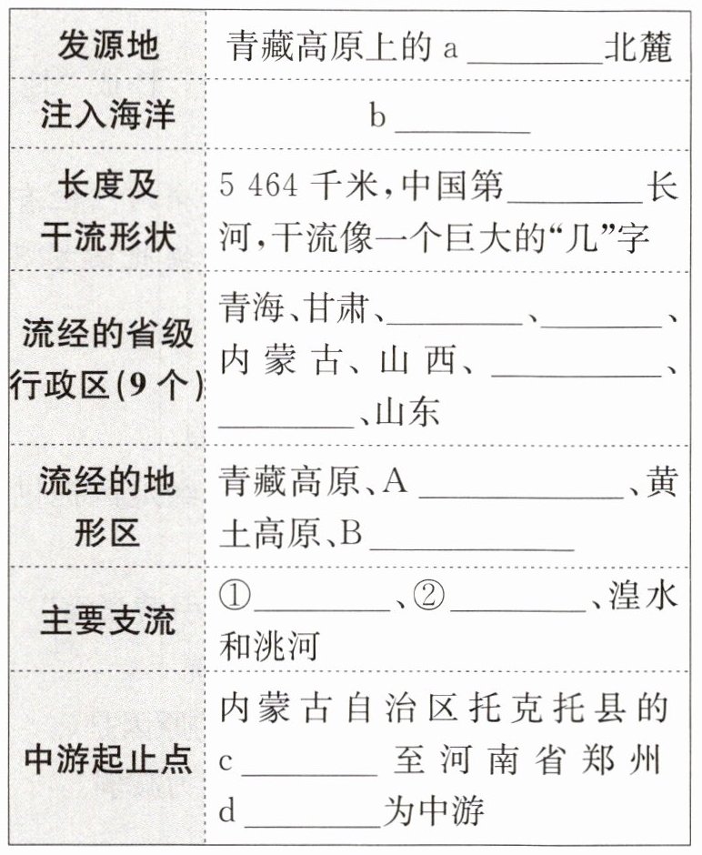 巴颜喀拉山 渤海 二 四川 宁夏 陕西 河南 内蒙古高原 华北平原 渭河 汾河 河口 桃花峪