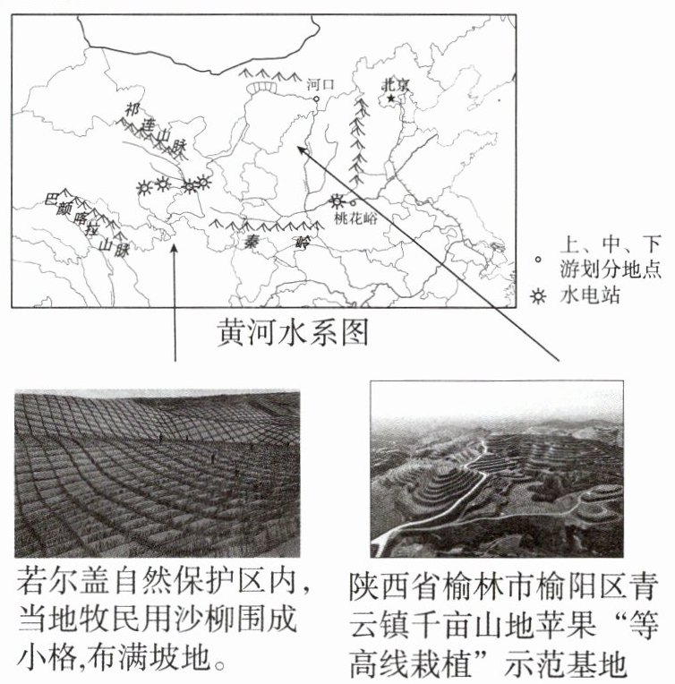上游湿地是黄河水源的主要补给地,地处青藏高原东缘的若尔盖湿地在 20 世纪 70 年代遭到破坏,导致草原退化。近年来,当地牧民用沙柳围成小格,布满坡地。