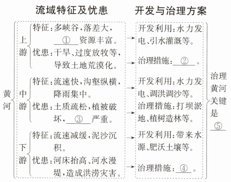 (4)①水能 ②保护草地 ③水土流失 ④加固堤坝 ⑤治沙