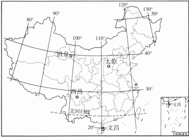 6. 文昌、太原、西昌、酒泉所在省级行政区的简称分别是(